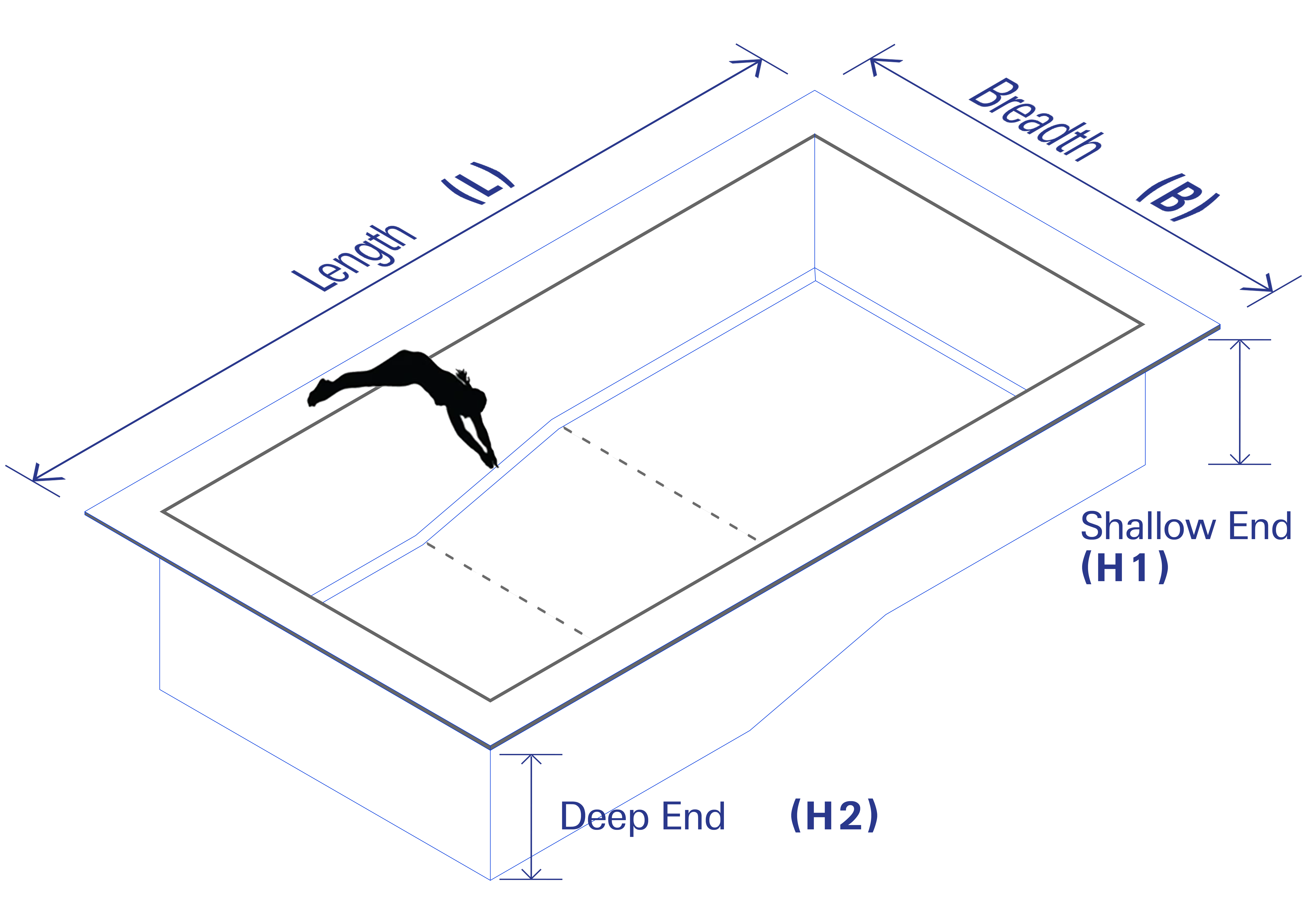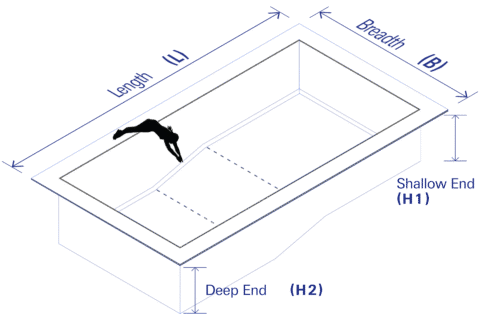 For pools with more complex shapes, you may need to perform multiple calculations and add them together. For further guidance on these calculations, read the detailed instructions provided below. If you require additional assistance, feel free to contact a swimming pool professional from Pronto Pools.
